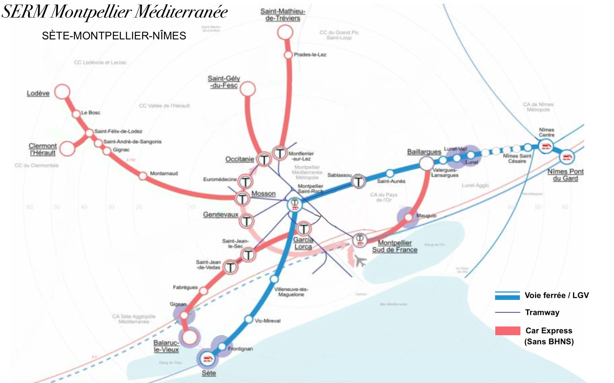 Au final le projet est bien petit par rapport a ce qui était annoncé, il s'agit juste de rajouter 2, 3 arrêt de ter, et de connecter la vallée de l’Hérault avec une ligne qui existe déjà. Le reste c'est les bustram, et connecté un peu mieu st gely du fesc et st matthieu.