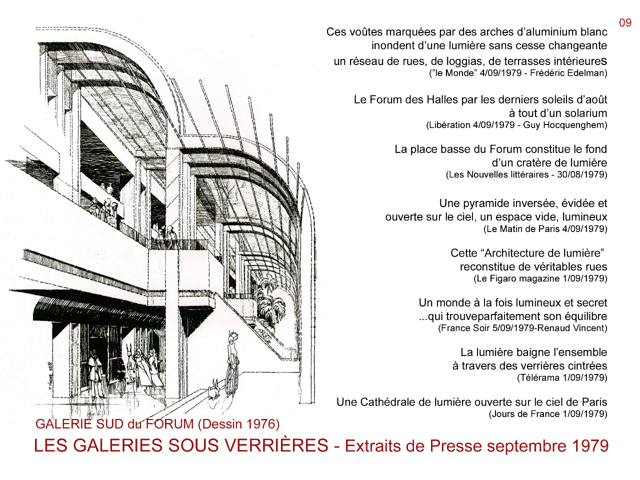 Concernant Pencréac'h et Vasconi, je rappelle qu'ils ne sont responsables que de la partie souterraine du Forum (côté Est), pas des "parapluies" que Willerval a rajoutés au-dessus. J'ai très souvent entendu critiquer les parapluies mais pas tellement les grandes verrières du Forum, qui permettaient d'inonder de lumière toutes les coursives et laissaient la place Basse à l'air libre. Allez voir dans les explications de Pencréac'h ce que devient la lumière naturelle au fond du "cratère" avec le projet Canopée et jugez sur pièces (il fournit des documents édifiants) plutôt que de le ringardiser d'office. Personnellement je suis prête à prendre le pari que le plupart du temps il faudra prévoir un éclairage électrique au fond du cratère et en permanence dans les coursives qui l'entourent, alors qu'aujourd'hui tout ça est à la lumière du jour.