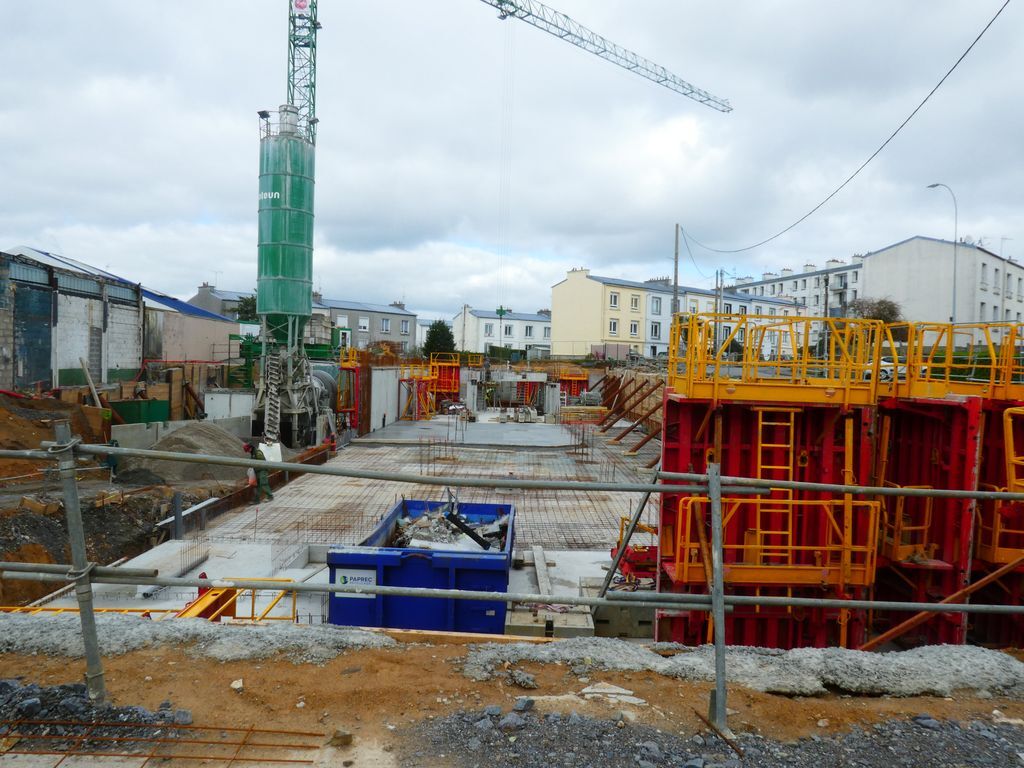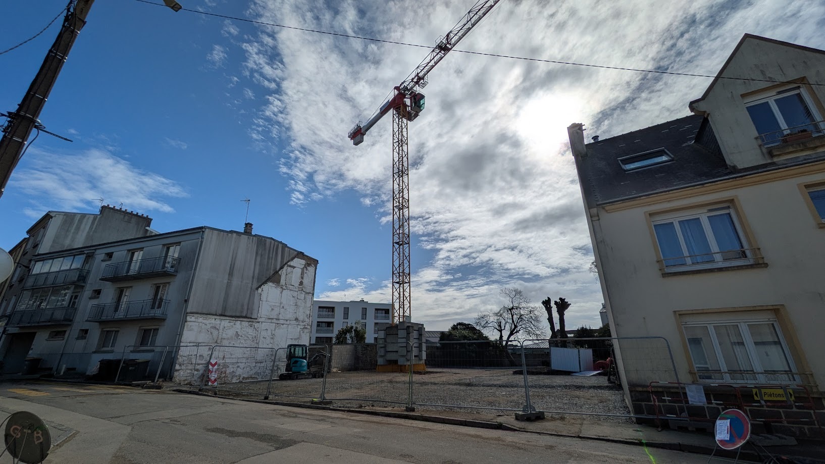 Rue de Kermaria, la grue est en attente, les plots sont coulés.