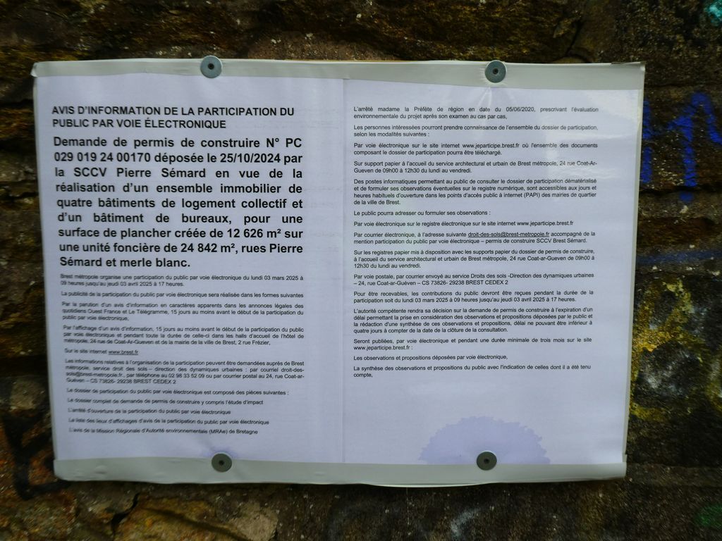 Ouverture ce jour d'une participation du public par voie électronique du gros projet immobilier des rues Sémard et du merle blanc.