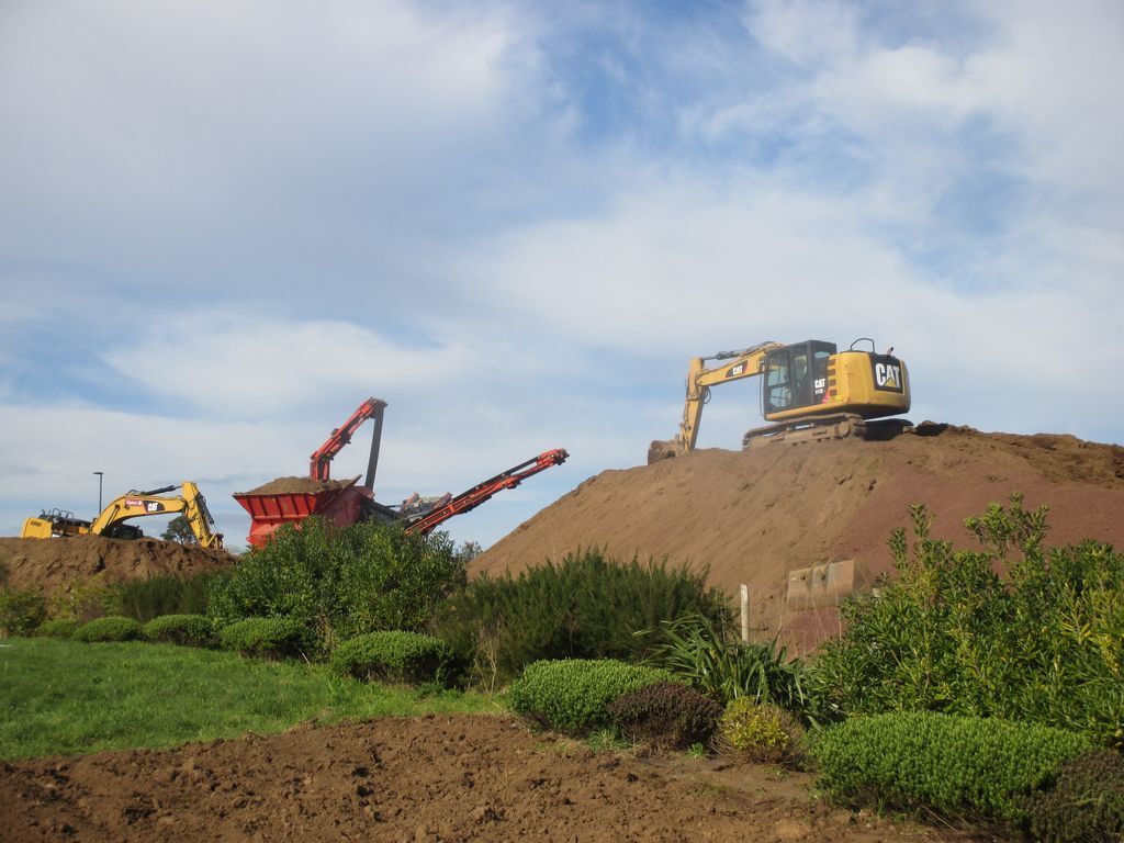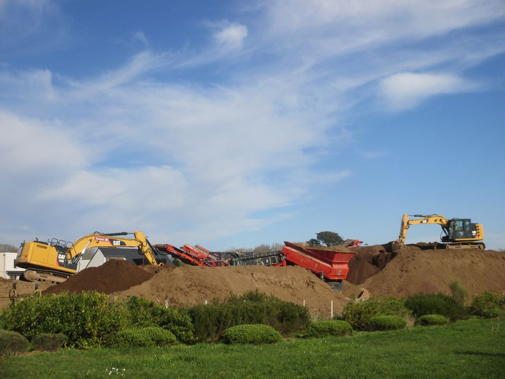Kerlinou, nouvelle tranche? L'entreprise Térideal, Ex Sparfel décape la terre végétale d'un champ adjacent au lotissement en cours pour la tamiser. Stock pour les espace herbeux le long des voies du tram, l'entreprise étant adjudicataire d'une tranche des espaces verts?