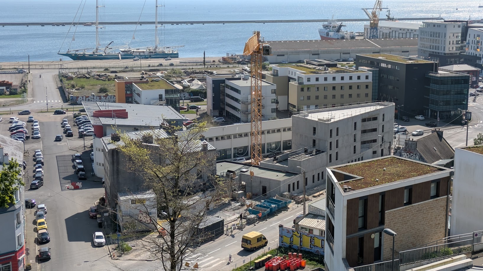 La grue à tour visible du port du château, laisse imaginer une belle vue panoramique pour les étages supérieurs de l'immeuble