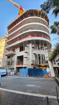 Sur les parcelles se trouvait auparavant l'hôtel Comté de Nice, un établissement 2 étoiles qui a fermé ses portes en 2019 et qui devait être reconstruit sur site sous la forme d'un 4 étoiles entièrement neuf par les propriétaires de l'époque, la famille Pedroni. Malgré le lancement du curage intérieur du bâtiment et une démolition partielle à l'arrière, stoppés courant 2021, ce projet hôtelier a été abandonné.