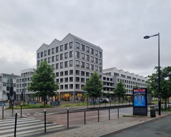 Programme mixte rassemblant un rez-de-chaussée de 3 000 m² dédiés aux commerces, trois niveaux de parking totalisant 536 places de stationnement, et enfin 4 000 m² de bureaux répartis sur la toiture du parking (R+4) et dans un volume en sur-hauteur au nord-ouest de la parcelle (R+6)1.