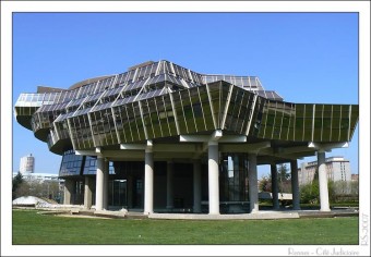 Cité judiciaire recouverte de verre brun opaque, construite de 1982 à 1985 sur les plans de l'agence BNR1.
