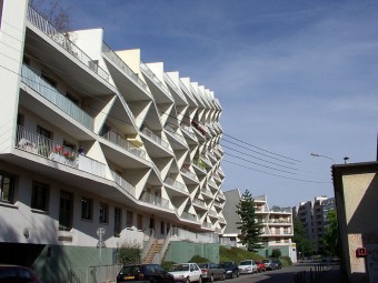Le Trimaran est composé de trois bâtiments disposés en étoile, le plus haut et le plus long (R+13) des trois longe la promenade du Lavoir, une berge de l'Ille. Les deux autres bâtiments (R+9 et R+5) sont construits au-dessus et sur le côté d'un espace commercial qui forme l'angle de la rue Papu et de la rue Vaneau. La hauteur de chacun de ces trois bâtiments varie en fonction de leur longueur, tout en conservant sur leur façade principale ce jeu de balcons prismatiques, qui caractérise le Trimaran. Livré en 1977, il a été construit par Arc Gestion sur les plans des architectes Georges Maillols et Paul Pothier1.