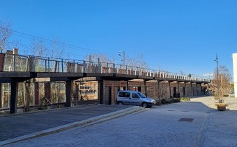 Livré en 2020 par l'agence N. Lebunetel Architectes Urbanistes sous maîtrise d'ouvrage de la SPLA Territoires Publics, le premier Mur Habité fait office d'obstacle acoustique entre la voie ferrée et les habitants du quartier, mais accueille également des locaux d'artisanat.