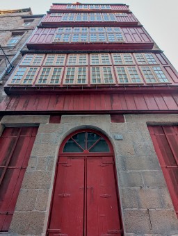 Immeuble historique construit en 16441 présentant une façade en bois et verrière sur quatre étages, restauré après la Seconde Guerre mondiale.