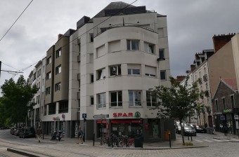 ** seules les teintes retenues diffèrent, le beige et le gris d'origine laissant la place à un traitement bi-chromatique plus franc (blanc et gris anthracite) et plus présent, qui vient dynamiser la façade