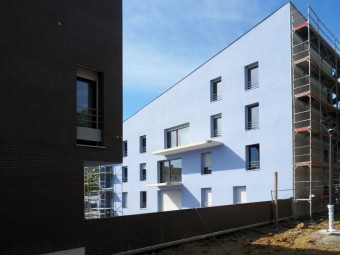 Ensemble de 29 logements sociaux répartis en un petit immeuble collectif en R+3 et des maisons individuelles groupées, le tout construit de part et d'autre de l'allée des Œillets.