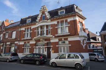 La façade de cet immeuble issu de la reconstruction porte la signature « E. Lancelle - architecte ».
