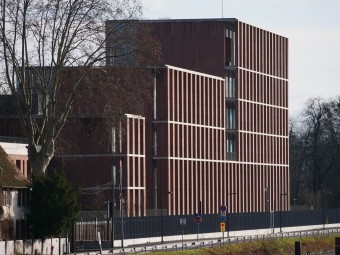 Ce nouveau consulat est revêtu de grès rose des Vosges ainsi que de céramique bleue d'Izmik, fabriquée à la main. L'architecte turc Han Tümerkin est associé pour la réalisation à l'agence strasbourgeoise Plan Libre.