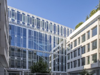 L'intérêt de ce bâtiment livré à la fin des années 70 est qu'il se présente comme un "anti-building", et qu'il s'assume comme tel. Constitué de plusieurs bâtiments emboîtés, il respecte scrupuleusement le contexte haussmannien environnant avec un soubassement évidé sur la rue, de hauts plafonds avec grandes fenêtres en façade, et un toit rappelant les toits parisiens en ardoise ou zinc. Tout l'appareillage technique est reporté dans les piliers situés à chaque coin de l'édifice, cette astuce permettant de créer des plateaux sans interruption à chaque étage, et par conséquent un aménagement intérieur modulaire.