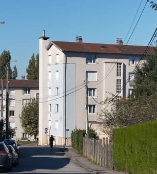 Cette barre comptant 40 appartements fait partie de la résidence Fustel-de-Coulanges, totalisant 100 logements répartis sur deux immeubles construits en 1964 sous maîtrise d'ouvrage de la Société Immobilière des Chemins de Fer français (SICF).