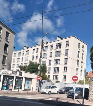 Immeuble résidentiel en R+4 comptant 20 appartements faisant partie de la résidence Amyot, copropriété totalisant 28 logements répartis sur deux immeubles livrés en 1958 par l'architecte Jean Tandeau de Marsac1 pour le compte de la SCIC de la rue Amyot.
