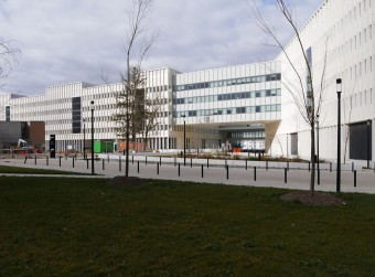 Ce bâtiment est relié à la partie située sur le lot EB1 par une passerelle de plusieurs niveaux surplombant la rue Joliot Curie.