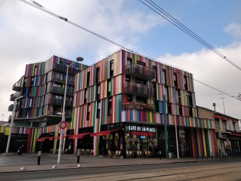 Construction d'un ensemble de logements (80 logements en accession et 43 logements sociaux) en 5 plots, reposant sur un socle commun accueillant un marché couvert.