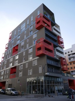Compris dans le lot H d'une SHON totale de 12 795,35 m², cet immeuble en escalier accueille 90 logements (6 200 m²) et 400 m² de commerces. PC n° 093 070 12 A 0020