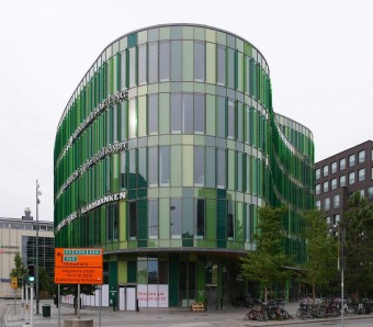 Immeuble de bureaux avec commerces en rez-de-chaussée construit en 2015 par l'agence Kanozi. Sa façade verte en fait un élément singulier face à la gare centrale de Malmö1.
