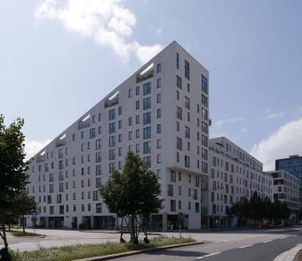 Ensemble immobilier de 187 logements avec commerces en rez-de-chaussée occupant un îlot complet, réalisé par l'agence Juul Frost Arkitekter1.