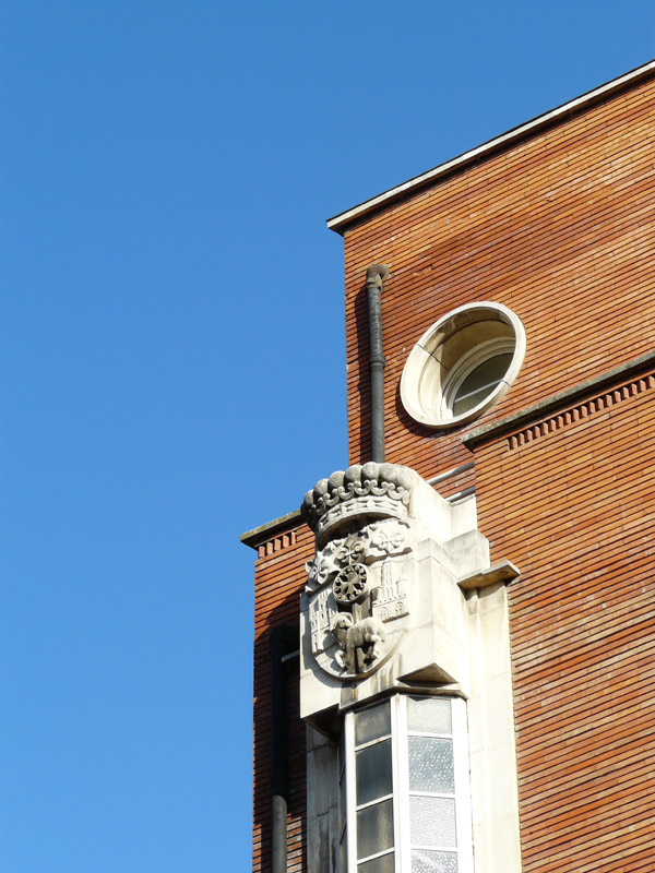 Détail du blason au sommet du bow-window