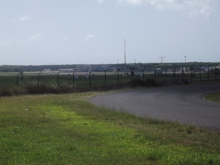 L'aérogare nord de l'aéroport Pôle Caraïbes vue depuis la piste d'atterrissage.